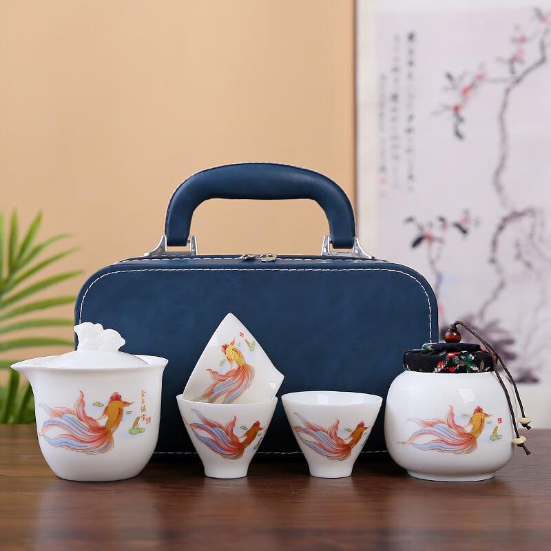 Shangqi Suet Jade White Porcelain Travel Tea Set