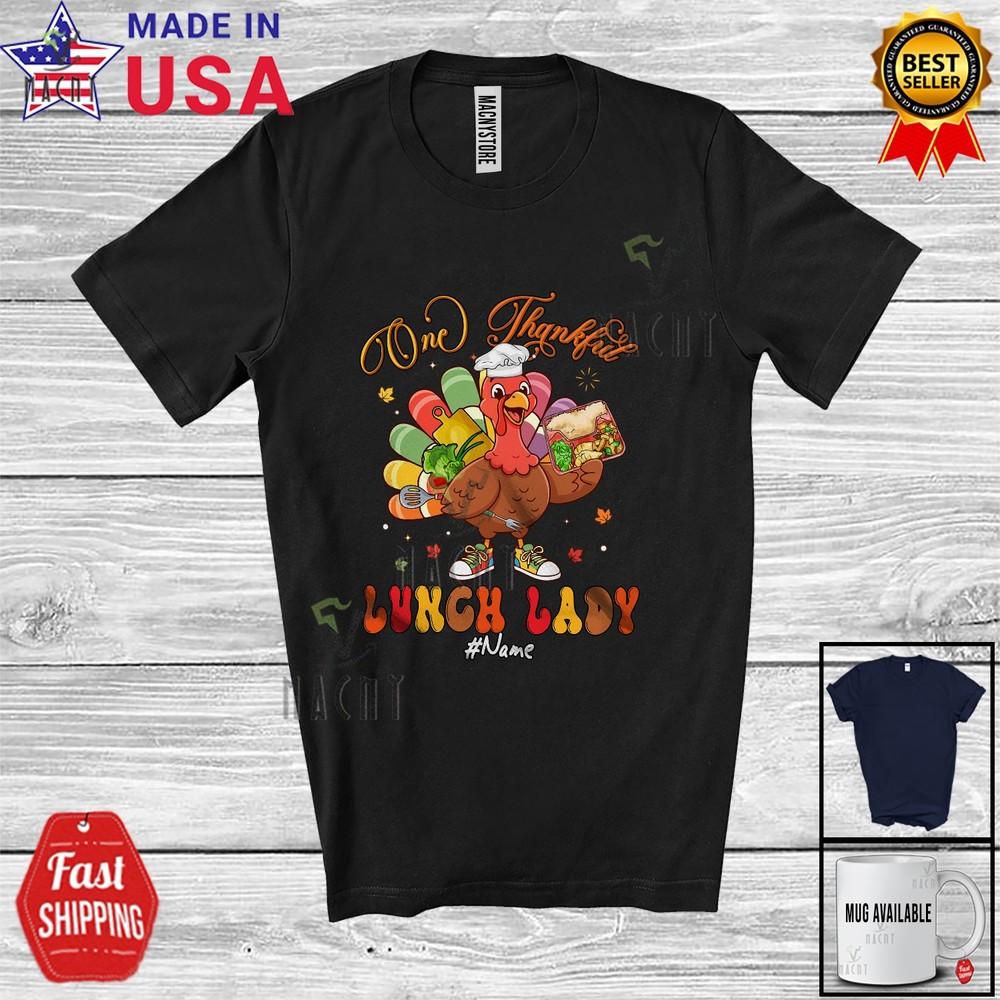 Custom Name One Thankful Lunch Lady Lovely Thanksgiving Turkey Proud Job Shirt