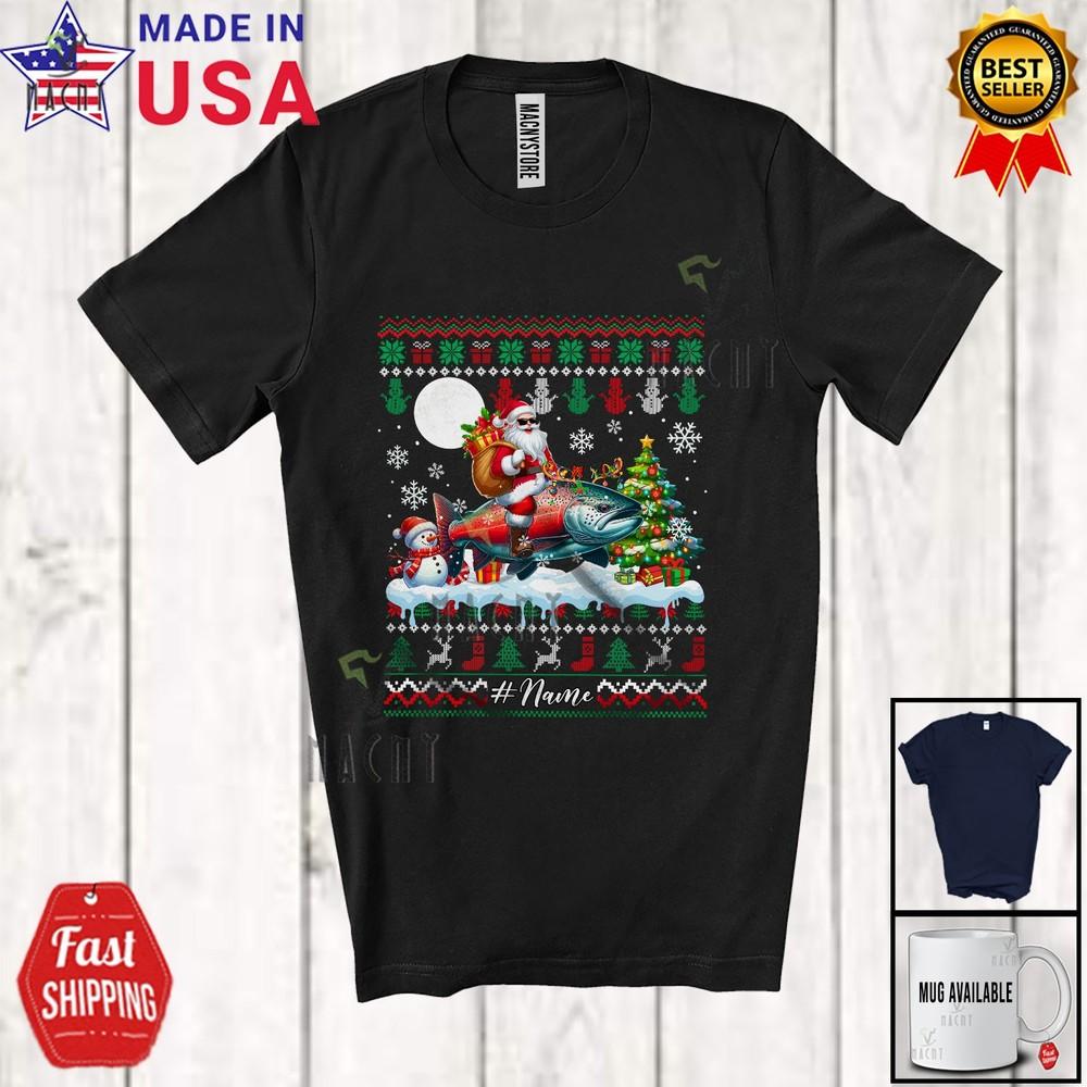 Svetr s vánočním stromkem a Santa Clausem jedoucím na lososu sockeye s vlastním jménem Zvířecí tričko
