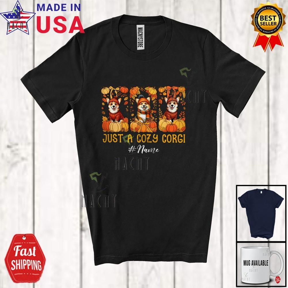 Vlastní jméno Útulný Corgi Díkůvzdání Dýně Tři Podzimní Majitel Corgi Tričko