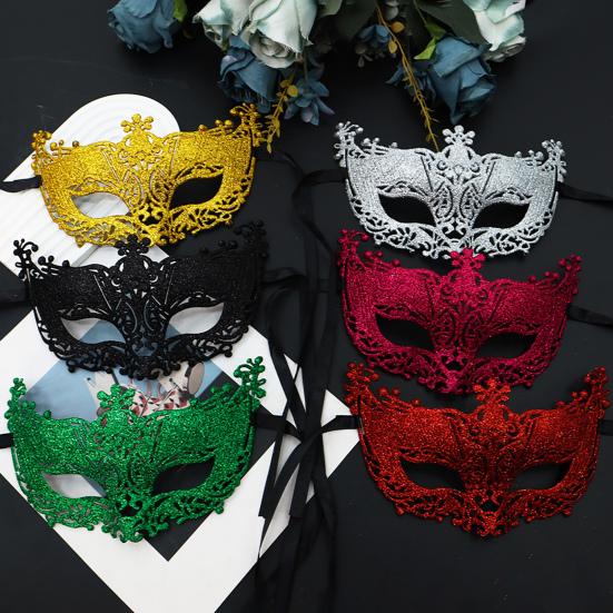 Maškarní maska na polovinu obličeje se vyznačuje vynikajícím řemeslným zpracováním se složitou dutou řezbou a trojrozměrnou dekorací, což nabízí luxusní vzhled, který přesahuje levné plastové alternativy.. Tato maska, dostupná v šesti zářivých barváchčerné, zlaté, modré, růžové, červené a stříbrné, snadno doplňuje různé styly oblečení.. Jeho třpytivou texturu zvýrazňuje jemný třpytivý prášek, který zachycuje světlo, díky čemuž budete středem pozornosti na jakékoli události..