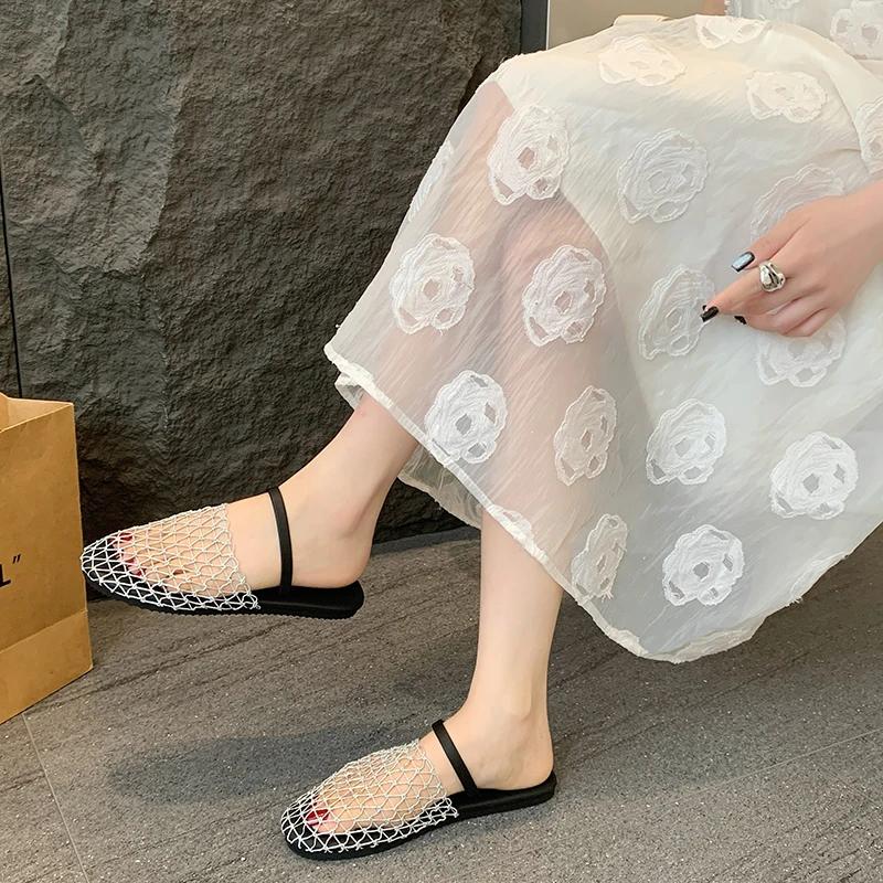 Fashion Women's Slippers Flat Sole Round Toe Mesh Upper Cover Toe Women's Mules Shoes Women Dress Outdoor Breathable Zapatillas De Mujer