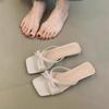 Fashion New Women Slippers Summer Fashion Butterfly-knot Satin Women Slipper Slip on Ladies Sandal Outdoor Low-heeled Dress Slides Shoes