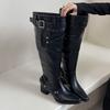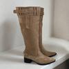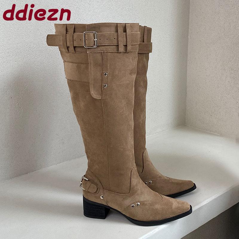 Móda Módní Špičaté Dámské Kozačky po Koleno Moderní Boty Obuv Dámská Čtvercové Podpatky Obuv Dámské Dlouhé Kozačky Boty Lodičky