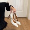 Fashion French Square Thick Heel Single Shoes Women's 2025 New Retro Style One-word Buckle with Light Mouth High Heels
