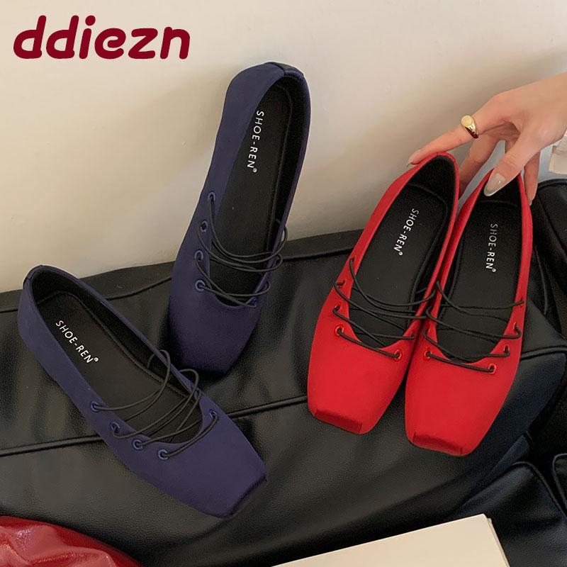 Fashion 2025 New Footwear Shallow Ladies Mary Janes Flats Shoes Luxury Soft Female Square Toe Fashion Silk Women Ballet Flats Shoes