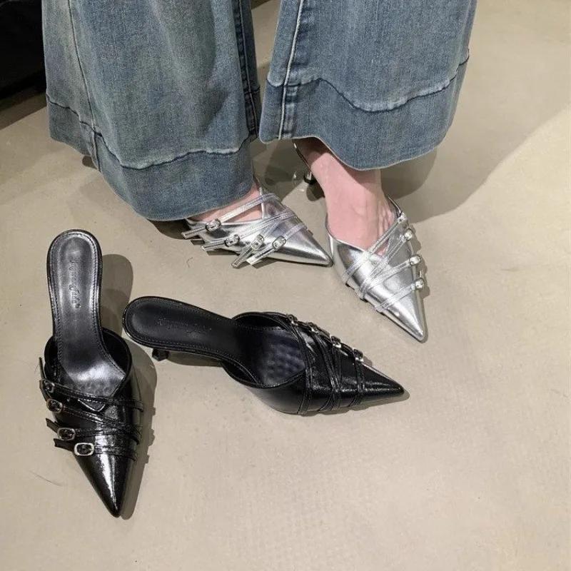 Fashion Sexy Pointed Toe High Heel Slippers Summer New Fashion Ladies Slide Designer Sandals Elegant Ladies Muller Shoes Plus Size 43