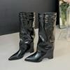 Fashion Fashion Buckle Women Knee High Boots With Heels Footwear Female Pointed Toe Party Modern Ladies Long Boots Shoes Pumps