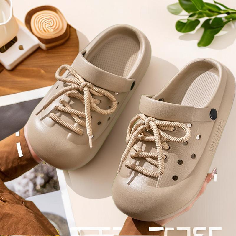 Móda 2025 Módní šněrovací pantofle pro ženy Platformové dřeváky Měkké EVA Letní boty 2 způsoby nošení Dívčí domácí plážové nazouváky Streetové sandály