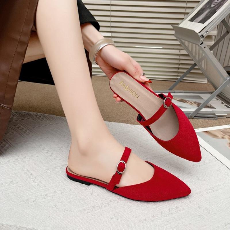 Fashion Ladies Shoes 2025 Mules Women's Slippers Fashion Buckle Slippers Women Flat Comfort Shoes Pointed Toe Slip on Women's Sandals