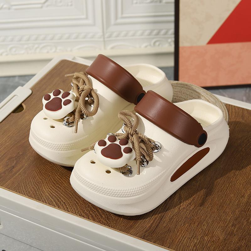 Fashion Women Summer Sandals Cute DIY Lace-up Paw Garden Shoes Girls Fashion Clogs Thick Sole 2 Way Wear Female Home Street Slippers