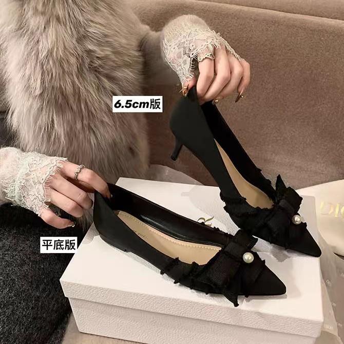 Fashion High heels pointed butterfly butterfly shallow mouth pearl commuting single shoes women's high heels wedding shoes