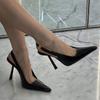 Módní Sexy Vysoké Podpatky Dámské Sandály Špičatá Špička Mělké Módní Boty Nový Návrhář Slingback Nazouváky 2024 Podzim Elegantní Femme Zapatos