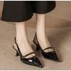 Fashion New Temperament Black Pointed Toe Shallow Mouth Kitten with Fine Heel One-line Buckle Buckle Female Summer High-heeled Sandals