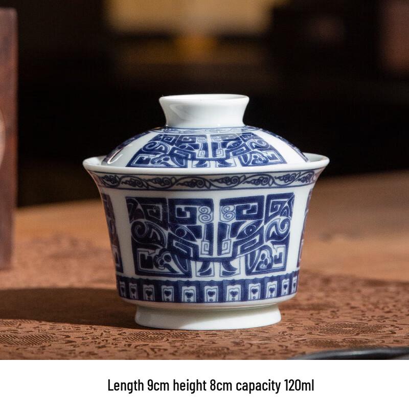 Chaxun Retro Blue & White Taotie Gaiwan Tea Set