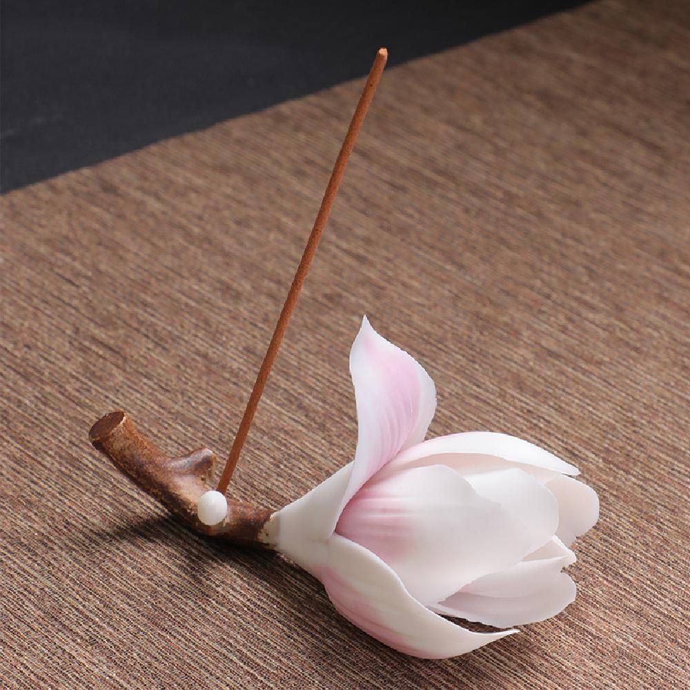 Ručně vyráběný keramický držák na tyčinkové kadidlo magnólie, elegantní domácí dekorace držák na kadidlo