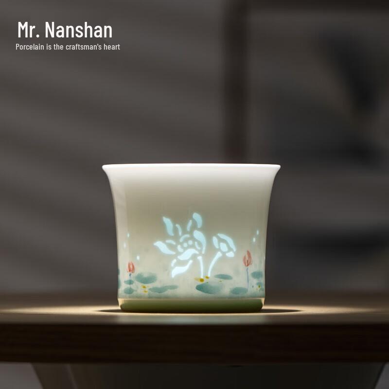 Pan. Ručně malovaný keramický šálek na kávu Nanshan s motivem nefritového lotosu