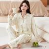 Middle-aged mother pajamas women's spring and autumn imitation cotton long-sleeved lapel cardigan autumn mother-in-law loungewear set