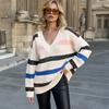 YYFS Women's Fashion Casual Fall Winter Stripe Print Long Sleeve V-Neck Tops Women's Clothing Woolen Knitwear Sweaters