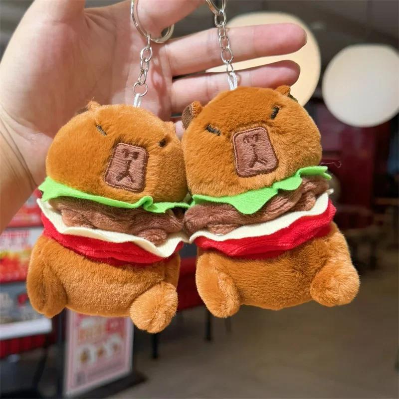 1-20PCS Hamburger Capybara Plush Keychain Backpack Pendant Toy Car Key Ring Decorat Kawaii Stuffed Doll Children Birthday Gift
