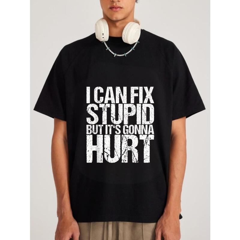 Crew Neck T Shirt White I Can Fix Stupid But Its Gonna Hurt Graphic Print Casual Wear for Men