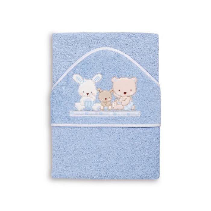 Serviette - interbaby - ours - 100 x 100 cm - coton - bleu clair