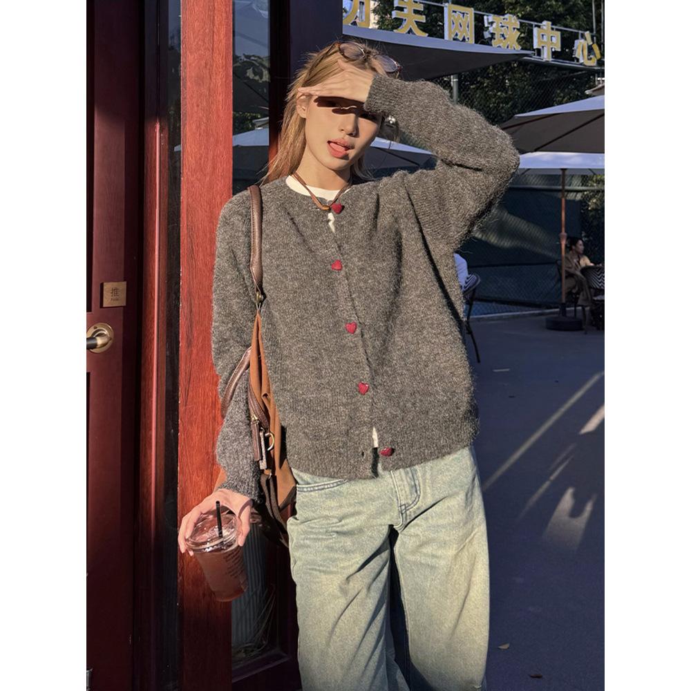 Fashionable chic love button jacket women's soft waxy knitted sweater cardigan autumn and winter casual lazy top long sleeve