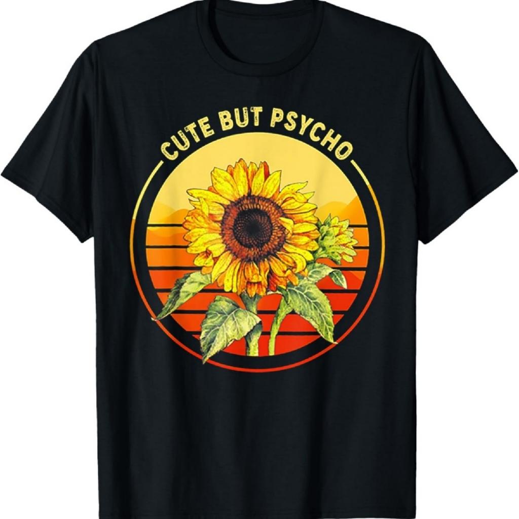 Cute But Psycho Sunflower Retro VIntage Sunset TShirt