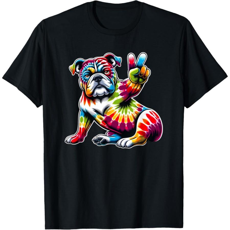 Peace Sign Tie Dye American Bulldog T-Shirt for Men Women Kids