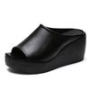 Women's Thick-sole Sandals Wear Leather Black and White Muffin High-heeled Fish Mouth Sandals Non-slip Wedge Sandals