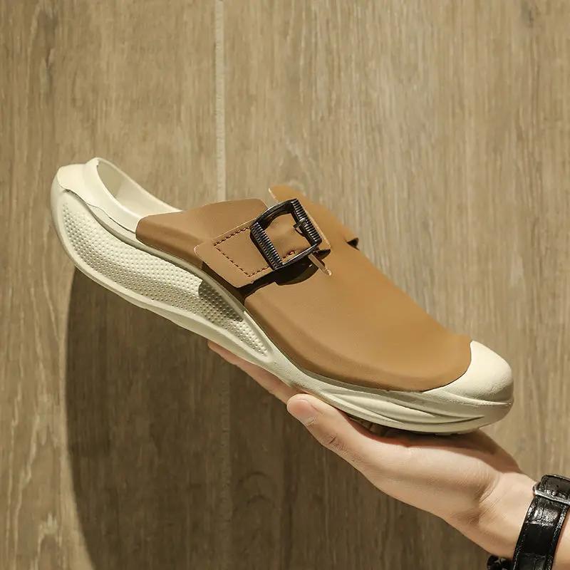 Fashion Slides Half Flat Outdoor Designer Luxury Men's Shoe Y2k Elegant Low Price Cheap Shoes Liquidation Summer Sale Male Slipper Brown