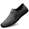Fashion Non-Slip Man Hollow Out Sandals Genuine Leather Mens Casual Summer Flats Outdoor Loafers Leather Beach Shoes for Men Roman Shoes