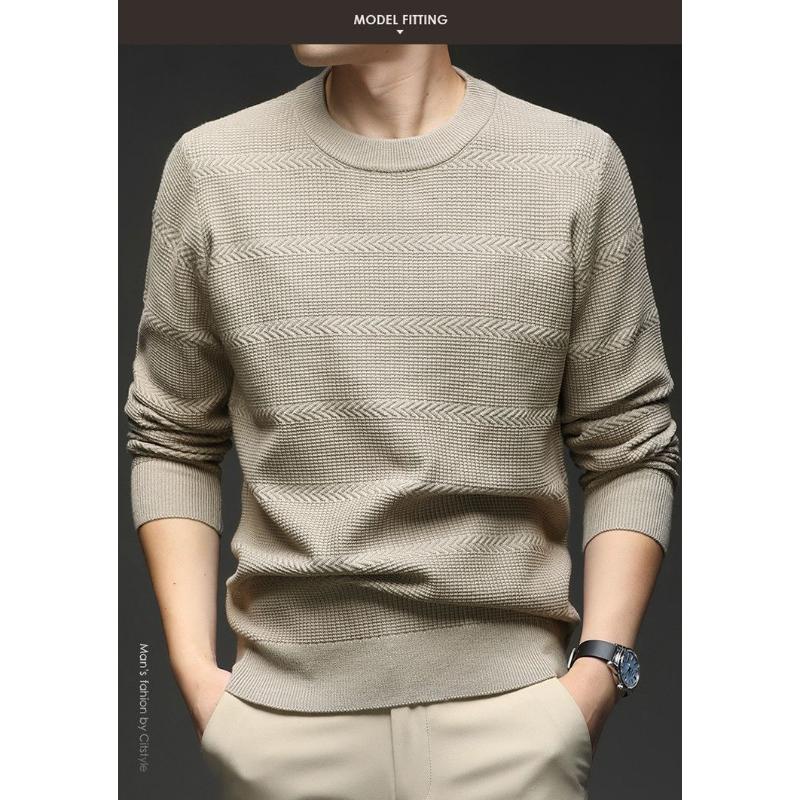 Fashion Round Neck Sweater for Autumn and Winter Men and Middle-aged All Match Top Casual and Trendy Knitted Sweater