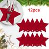 12pcs Christmas Star Five-Pointed Table Mats, Felt Fork and Spoon Bag Set, Christmas Table Decoration Tableware Bag, Christmas