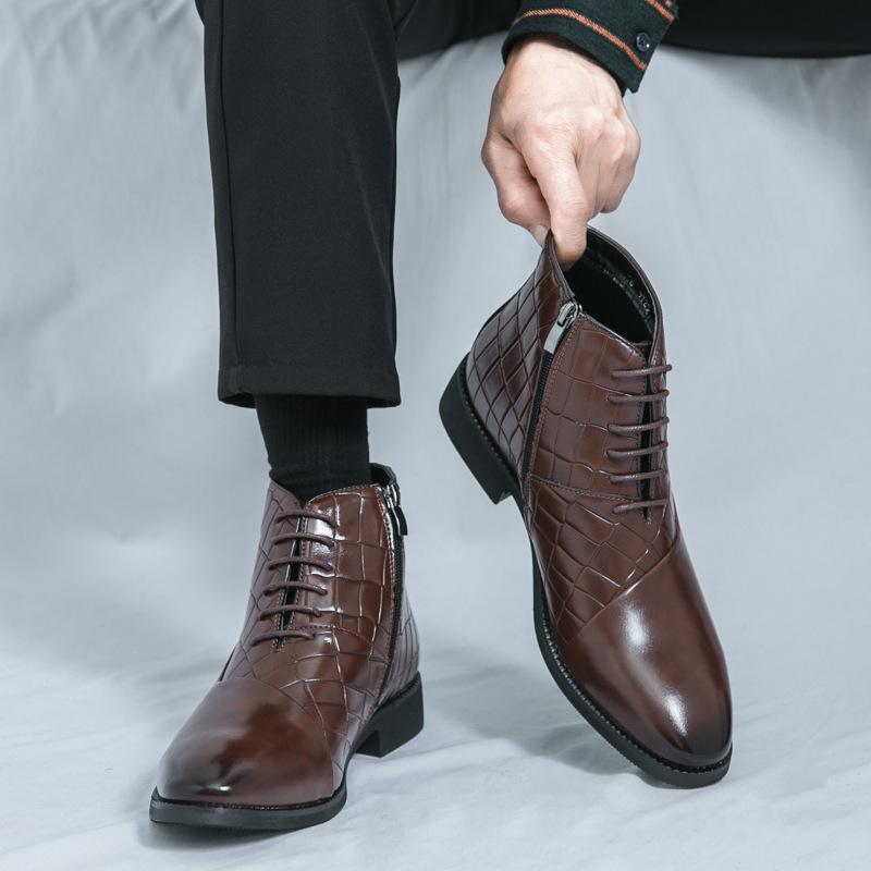 Large Size New Leather Boots Men's Fashion High-top Chelsea Boots Trendy Crocodile Pattern Business Dress Martin Boots Men