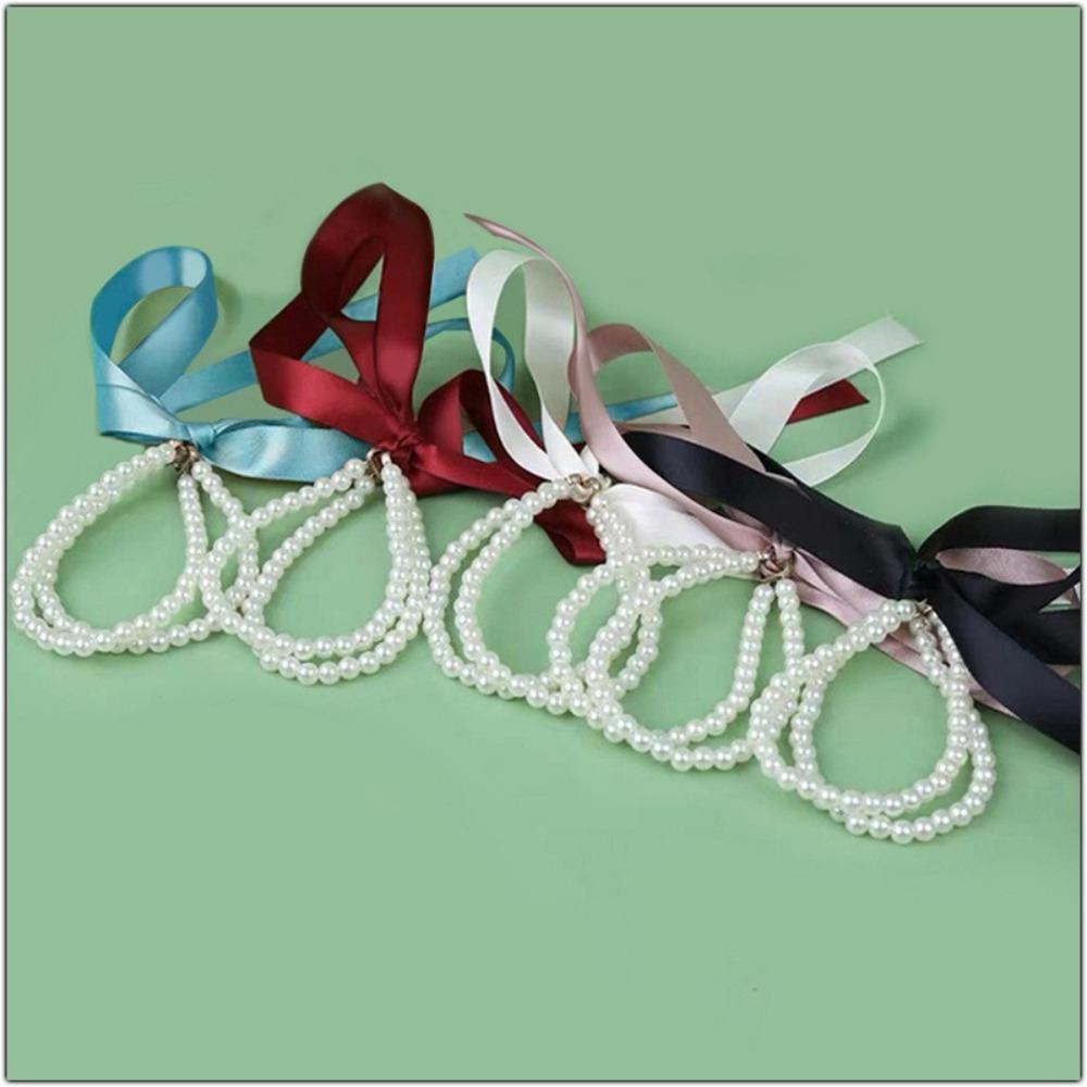 1pair Lovely Colorful Ribbon Bow Anklet High Heels Sandal Decoration Gift Double Layered Anklet Pearls Foot Chain