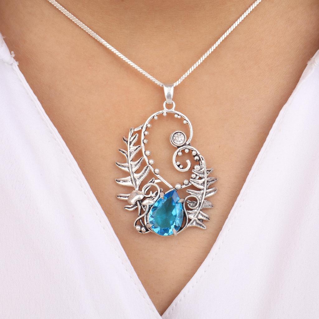 Natural Swiss Blue Topaz Gemstone 925 Sterling Silver Handmade Jewelry Pendant 1.8" For Anniversary Gift CP-42-10