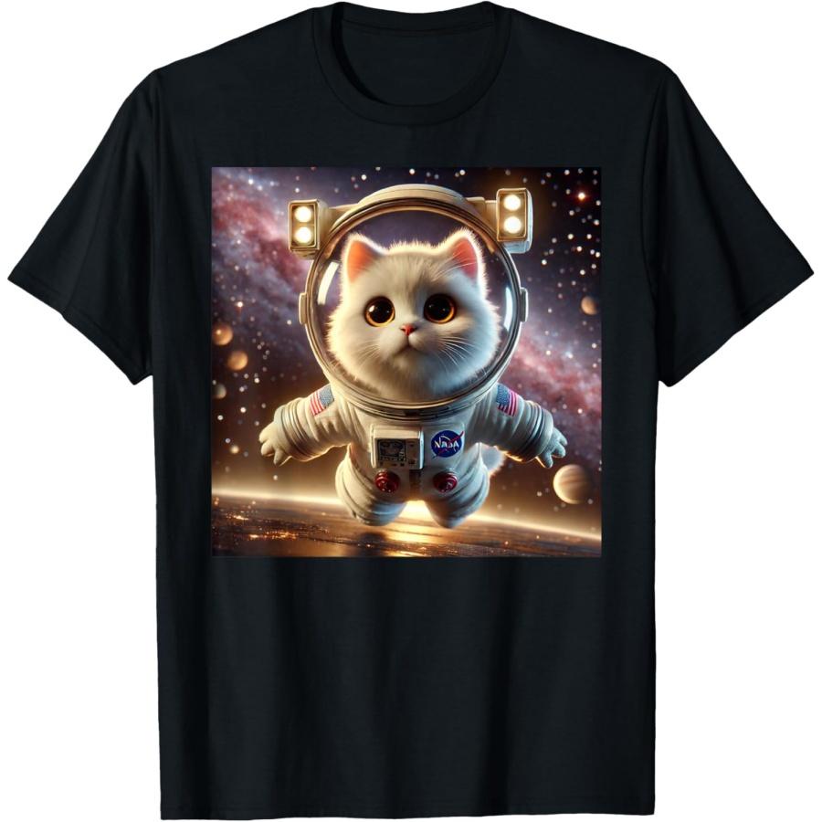Kočka Astronaut, Vesmírná kočka, Vtipný dárek Planety Pánské Dámské Dětské Tričko(1)