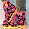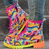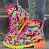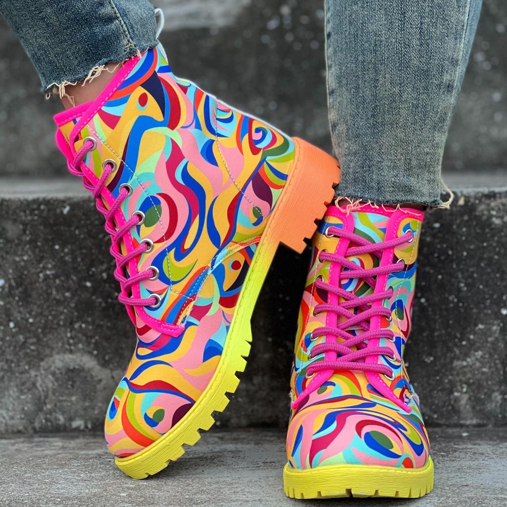 Dámské abstraktní barevné boty na masivním podpatku, Módní kotníkové boty se šněrováním, Pohodlné kotníkové boty