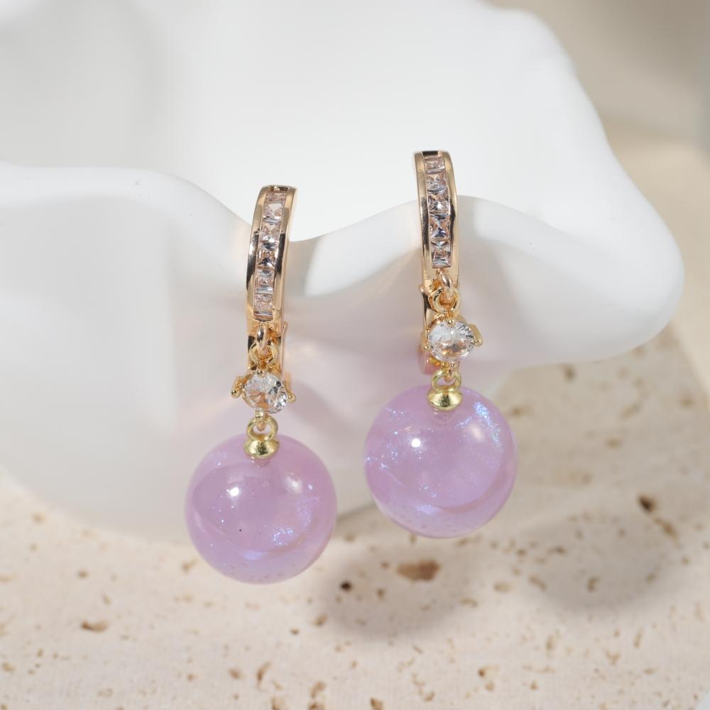 1 Pair Fashion Round Imitation Pearls Dangle Earrings for Women Zirconia Earring Jewelry Wedding Party Accessories