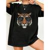 Nadměrné tričko s grafickým potiskem černého tygra pro běžné nošení a streetový styl