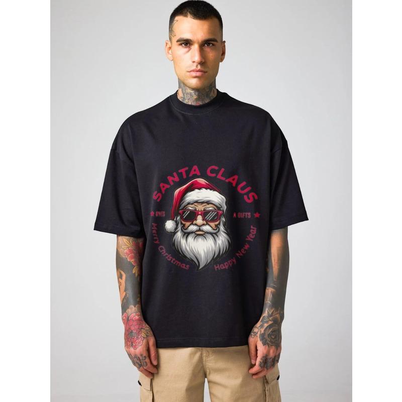 Vánoční tričko bílé Santa Claus se slunečními brýlemi a textem Veselé Vánoce Šťastný Nový Rok Sváteční párty Běžné nošení