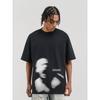Oversized T-Shirt Black Chaos Text and Silhouettes Graphic Print Casual Streetwear for Men