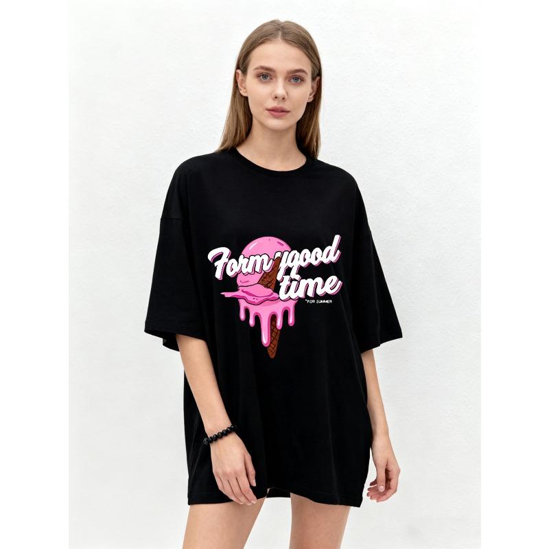Oversized T Shirt Black Ice Cream Graphic Form Good Time Summer Casual Wear