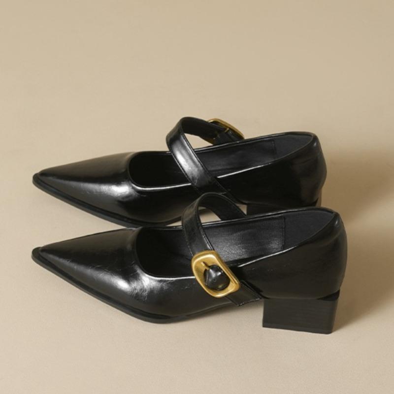 Fashion Temperament Women's Shoes Classics Black Mary Jane Shoe French Single Shoes for Women Pointed Toe Small Leather Shoe Dress Shoes