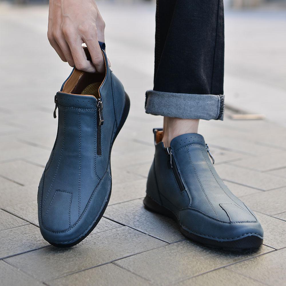 Fashion Men Leather Casual Shoes Thick Sole Men Adult Shoes Vintage Retro Casual British Style Streetwear Outdoor Comfort Non-slip Shoes