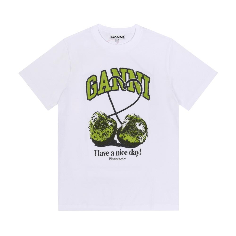Ganni Zelené Třešňové Logo Potisk Dámské Tričko T4291 151