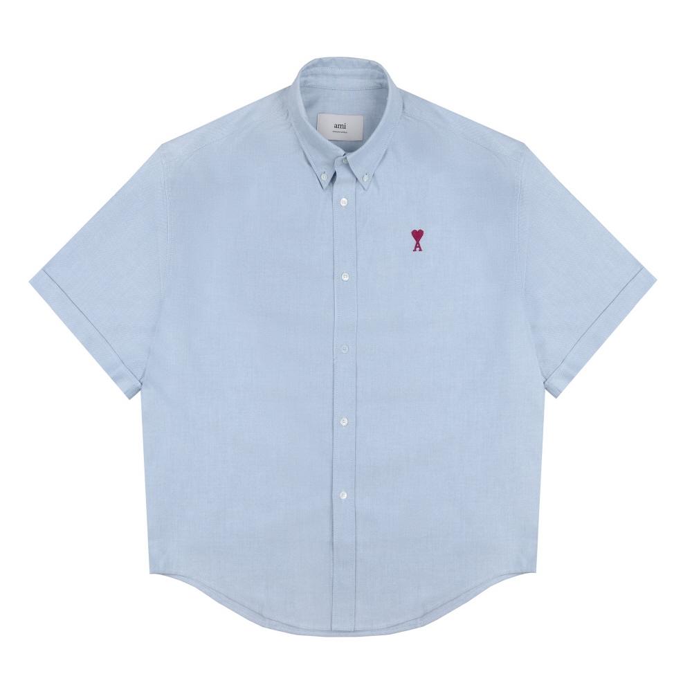 Ami Small Heart Logo Oxford Boxy Fit Short Sleeve Men S Shirt Co0031 4502