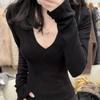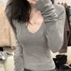 Kašmírová pruhovaná spodní košile s V-výstřihem, oboustranně česaná, dlouhý rukáv, dámská, čistý hedvábný styl