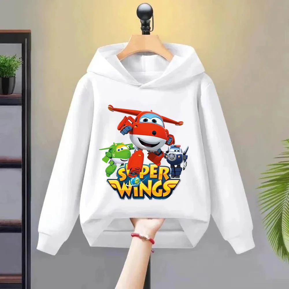 Nový trend Kreslený potisk Super Wings Dětská mikina s kapucí Podzimní a zimní Venkovní volnočasová Teplá Chlapecká Dívčí Pulovr Topy